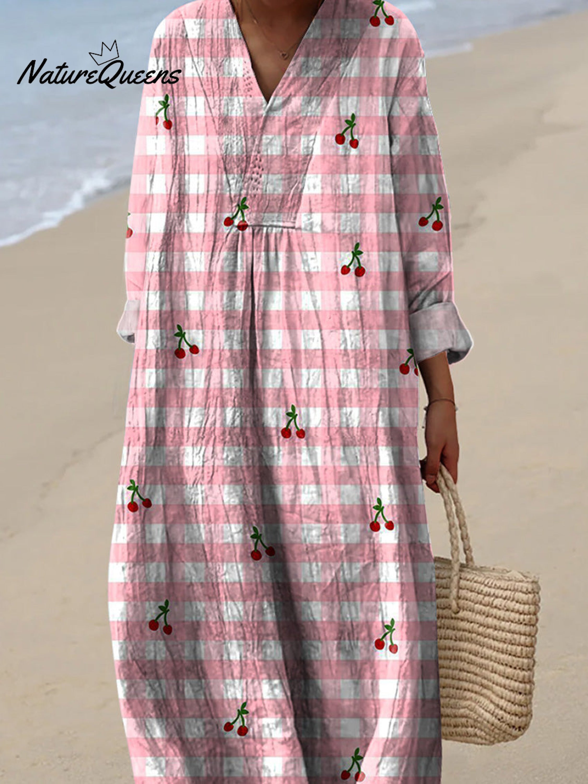 Lovely Summer Cherry And Plaid Pattern Printed Women's Dress