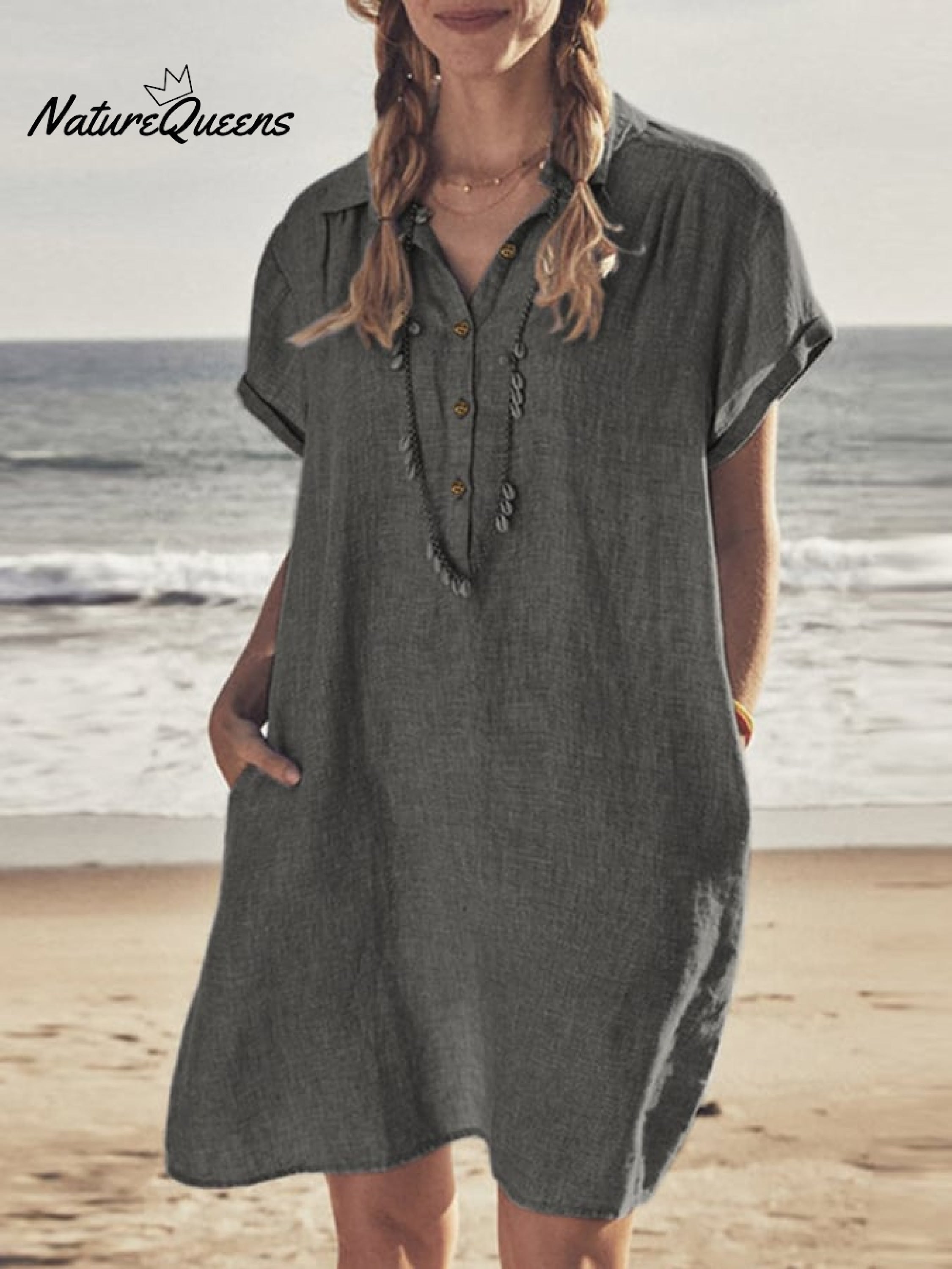 Cotton Linen Shirt Collar Casual Dress