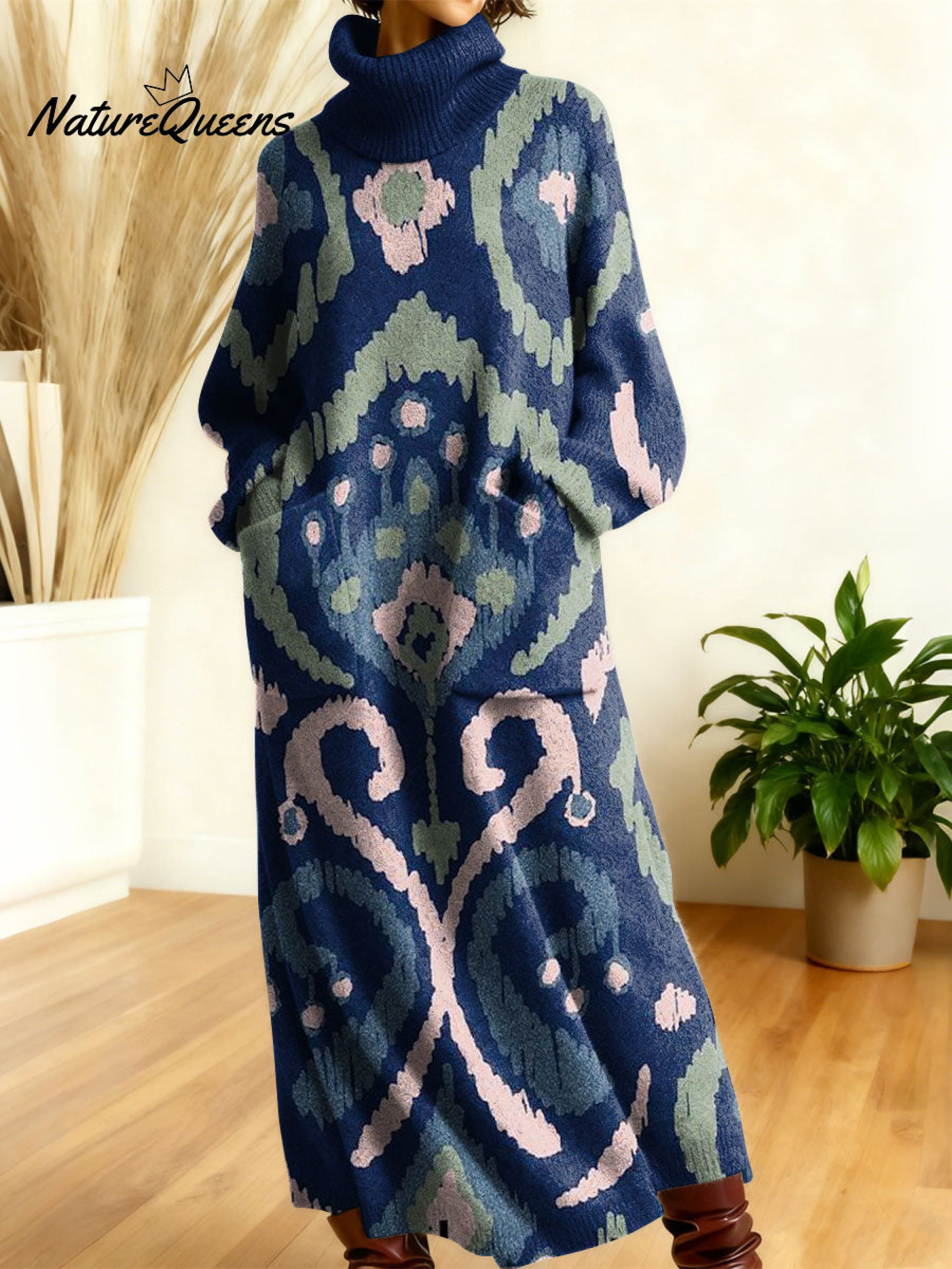 You may also likeWomen's Retro Floral Flowers High-neck Long-sleeve Casual Loose Knit Dress